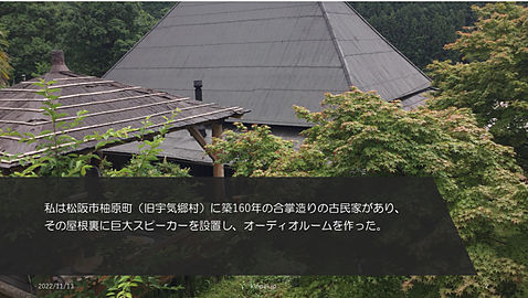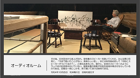 和州庵小屋裏スピーカー:田島和雄氏自作・横濱金平監修パイプオルガン楽曲が響き渡る
